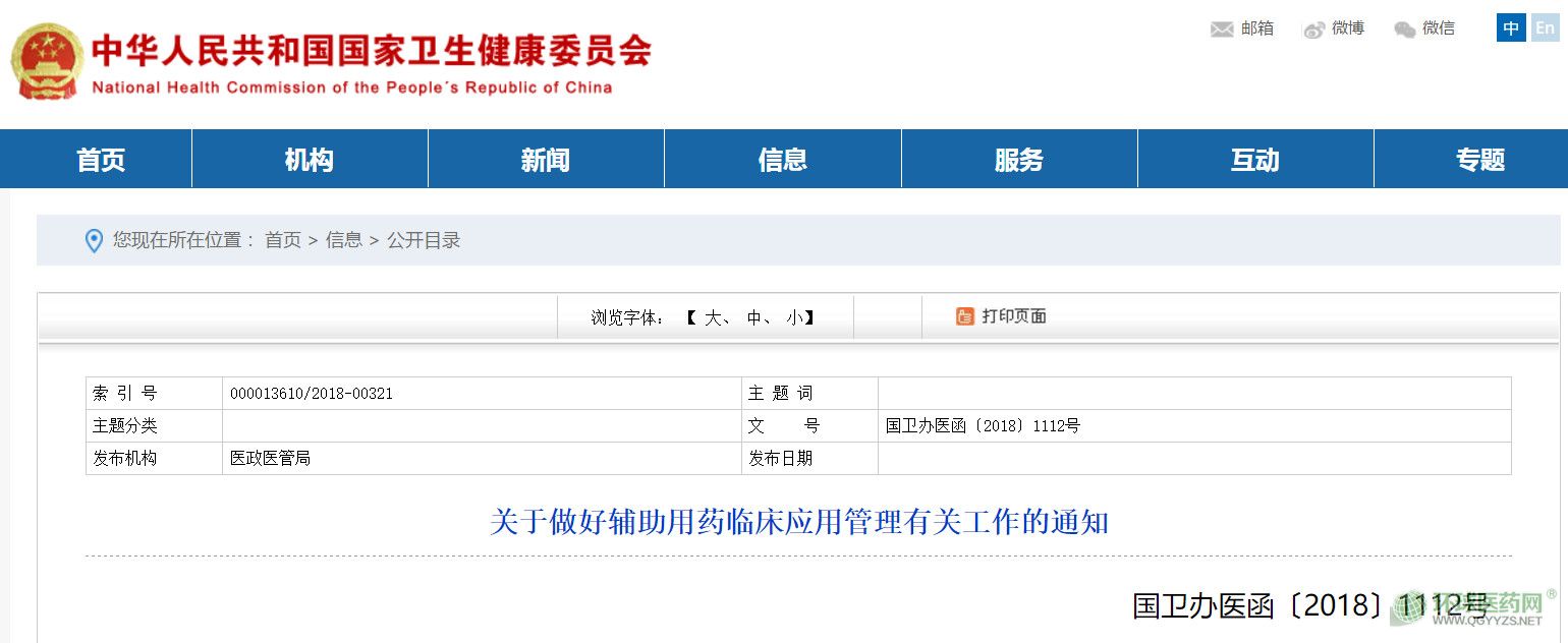 2018年12月12日,國家衛(wèi)生健康委辦公廳發(fā)布《關于做好輔助用藥臨床應用管理有關工作的通知》。