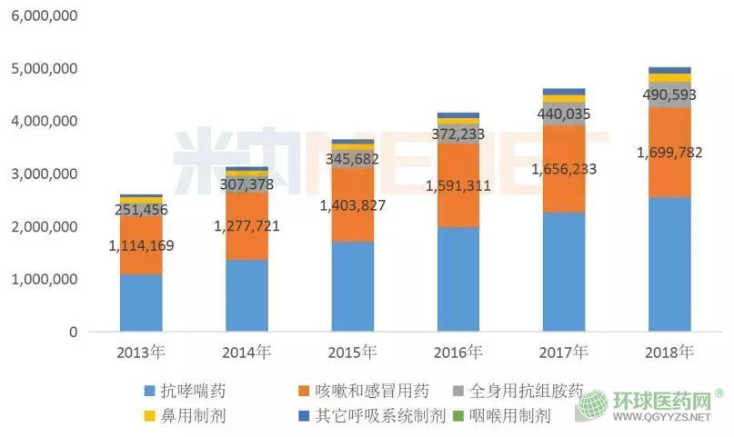 圖1:中國公立醫(yī)療機(jī)構(gòu)終端化學(xué)藥呼吸系統(tǒng)用藥銷售情況(單位:萬元)