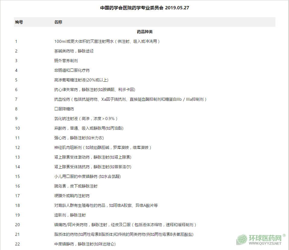 ▍2019版高警示藥品目錄發(fā)布