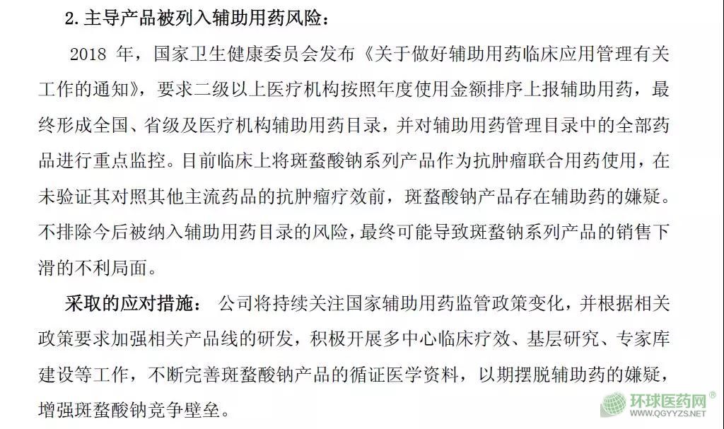 斑蝥酸鈉產(chǎn)品不排除今后被納入輔助用藥目錄的風(fēng)險(xiǎn),最終可能導(dǎo)致斑蝥鈉系列產(chǎn)品的銷售下滑的不利局面。