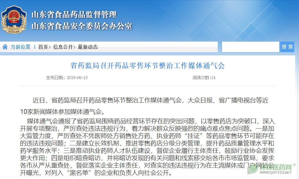 日前,山東省藥監(jiān)局召開藥品零售環(huán)節(jié)整治工作媒體通氣會,該會議通報了全省監(jiān)管部門的整治成果,并指出,接下來要圍繞4個方面進行管制。