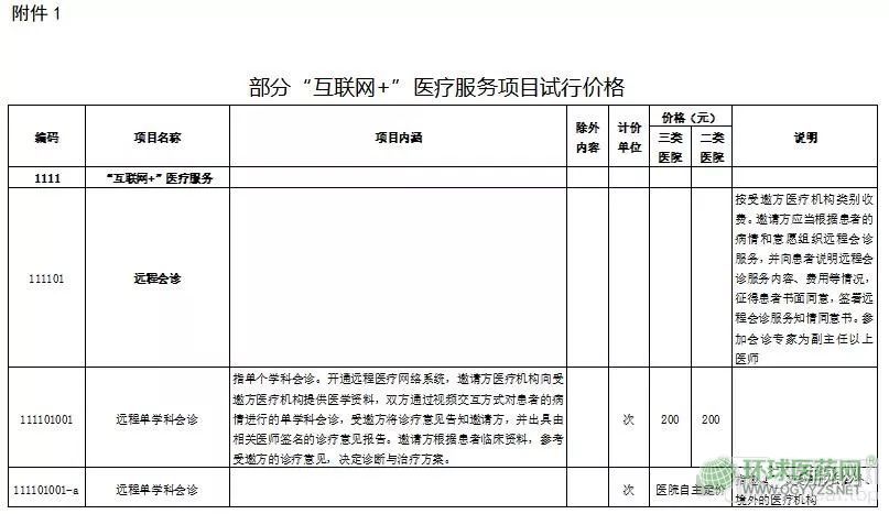 其中,遠(yuǎn)程會診項目的價格在200元-600元之間,互聯(lián)網(wǎng)醫(yī)院門診的價格在10元—50元之間,遠(yuǎn)程診斷的價格在40元-300元之間,遠(yuǎn)程監(jiān)測由醫(yī)院自主定價。只取藥不需要新治療方案的病人不收費。