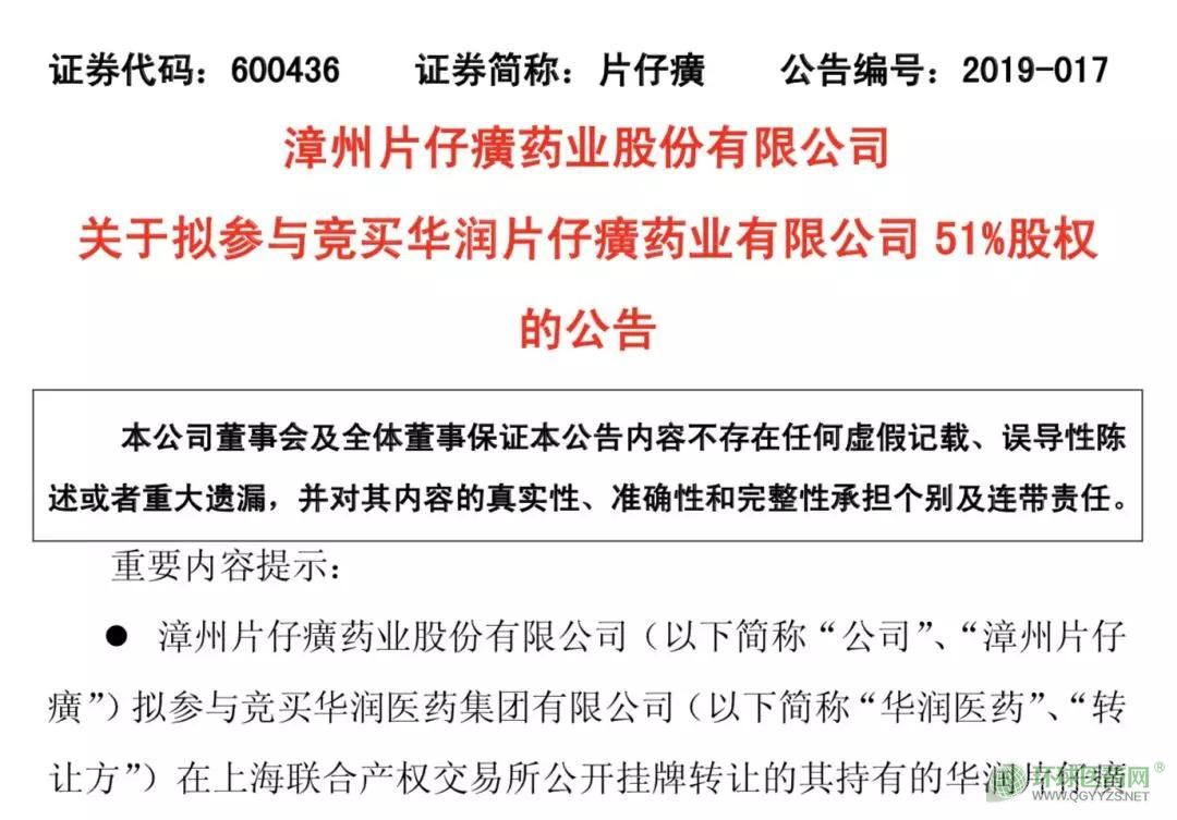 近日,漳州片仔癀藥業(yè)股份有限公司(以下簡稱“漳州片仔癀”)發(fā)布公告,擬參與競買華潤片仔癀藥業(yè)有限公司51%股權(quán)。