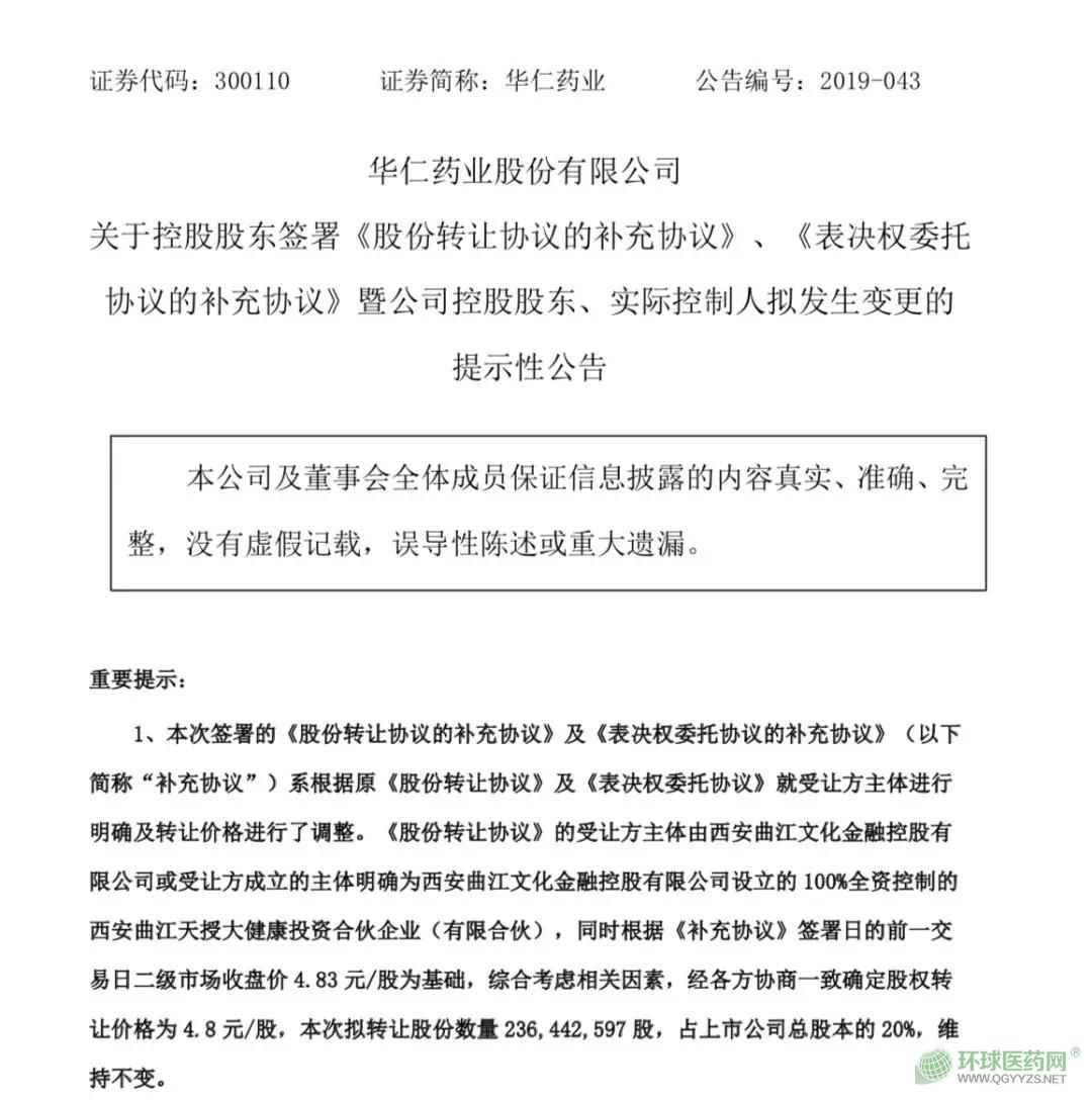 近日,華仁藥業(yè)發(fā)布公告《關(guān)于控股股東簽署《股份轉(zhuǎn)讓協(xié)議的補(bǔ)充協(xié)議》、《表決權(quán)委托協(xié)議的補(bǔ)充協(xié)議》暨公司控股股東、實(shí)際控制人擬發(fā)生變更的提示性公告》。