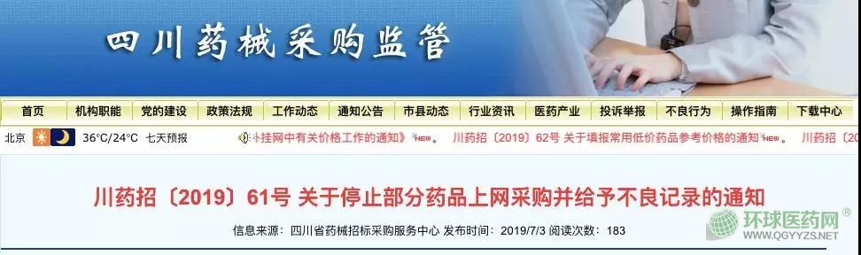 7月3日,四川省藥械招標采購服務中心發(fā)布《關于停止部分藥品上網采購并給予不良記錄的通知》。