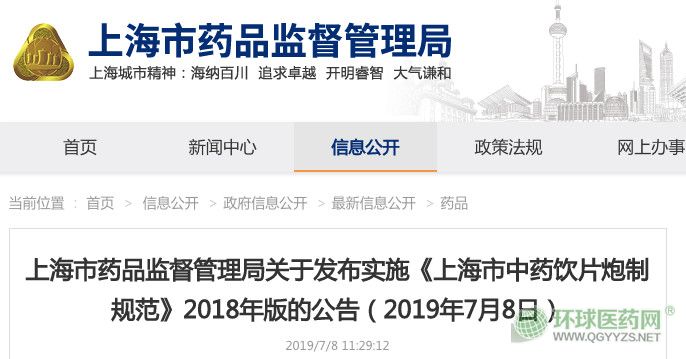 7月8日,上海市藥監(jiān)局也發(fā)布公告實施《上海市中藥飲片炮制規(guī)范》2018年版。