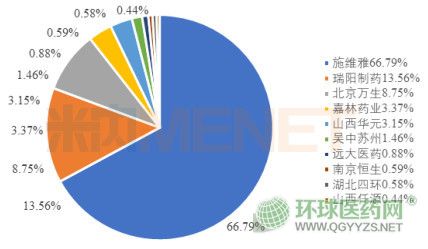 從品牌格局來看,米內(nèi)網(wǎng)數(shù)據(jù)顯示,施維雅的萬爽力片劑占比66.79%,山東瑞陽的根克通片劑占比13.56%,北京萬生的澤維爾片劑占比8.75%,北京嘉林藥業(yè)的奉樂膠囊占比3.37%,山西華元醫(yī)藥生物技術的興元君膠囊占據(jù)3.15%,江蘇吳中醫(yī)藥集團蘇州制藥廠的愛怡令片劑占據(jù)1.46%。其它占2.92%。