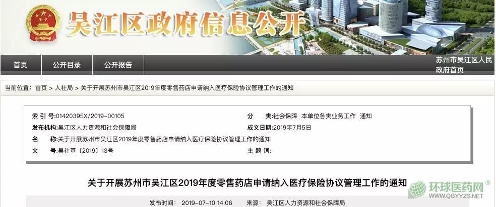 7月10日,江蘇省蘇州市吳江區(qū)人社局發(fā)布了《2019年度零售藥店申請納入醫(yī)療保險協(xié)議管理工作的通知》。