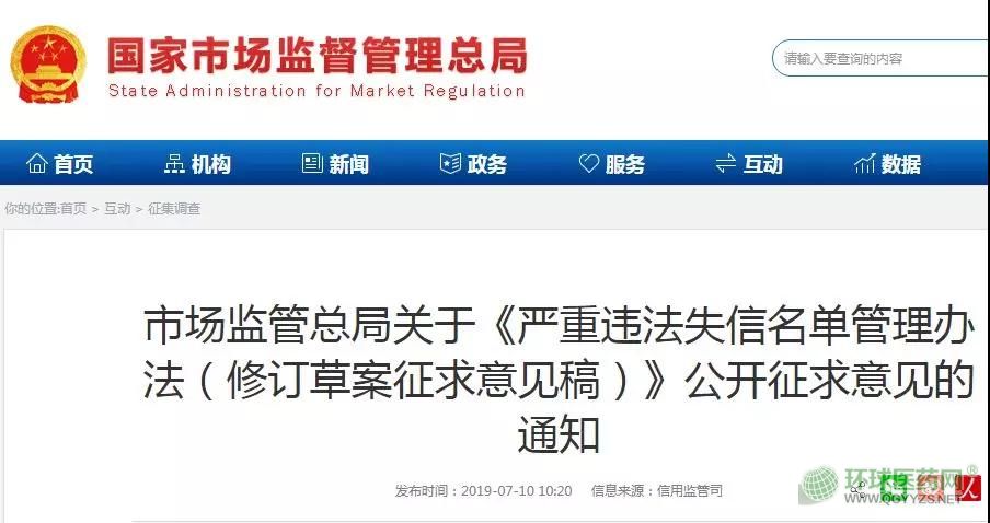 7月10日,國家市場監(jiān)督管理總局官網(wǎng)就《嚴(yán)重違法失信名單管理辦法(修訂草案征求意見稿)》(以下簡稱《征求意見稿》)向社會公開征求意見。