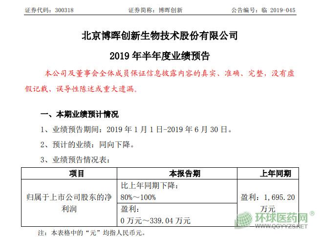 由于微量元素產(chǎn)品等老產(chǎn)品收入下降及新產(chǎn)品市場開拓、優(yōu)秀人才引進(jìn)、研發(fā)投入、以及融資費(fèi)用的增加,博暉創(chuàng)新2019年上半年凈利潤較上年同期下降80%-100%。