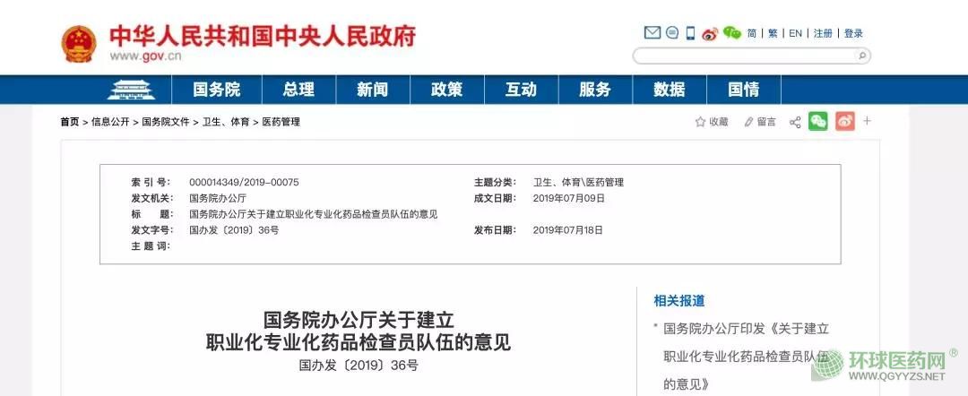 7月18日,國務(wù)院辦公廳發(fā)布文件《關(guān)于建立職業(yè)化專業(yè)化藥品藥品檢查員隊伍的意見》(以下簡稱《意見》)。