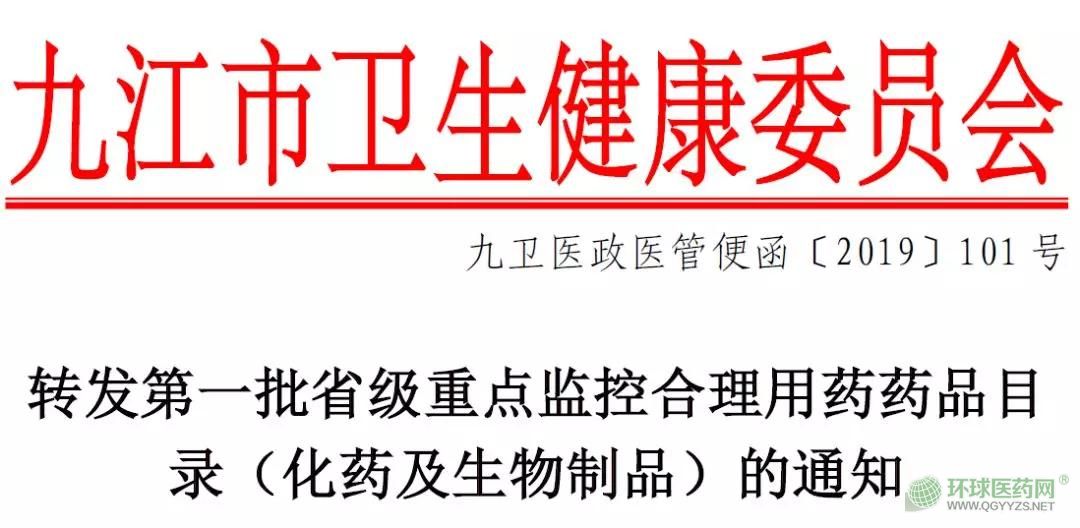 7月23日,江西省九江市衛(wèi)健委7月22日發(fā)布的《轉發(fā)第一批省級重點監(jiān)控合理用藥藥品目錄(化藥及生物制品)的通知》在行業(yè)流傳,41個藥品在九江市被重點監(jiān)控(詳見附件)。