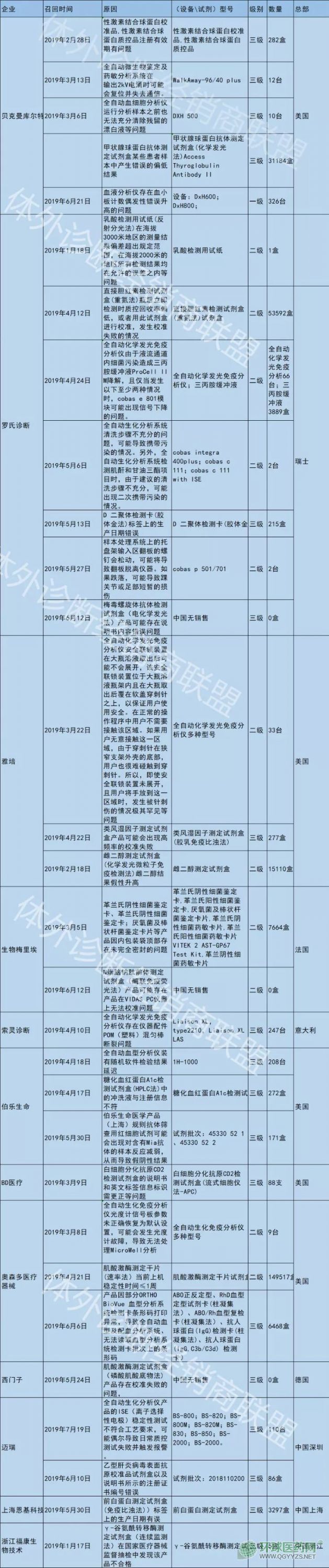 附2019年體外診斷行業(yè)召回匯總!