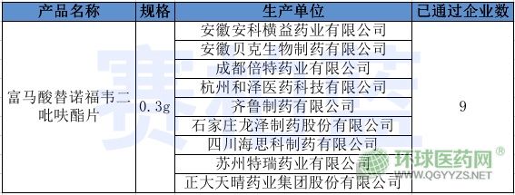 賽柏藍根據(jù)中國上市藥品目錄集統(tǒng)計,富馬酸替諾福韋二吡呋酯片0.3g是目前通過一致性評價企業(yè)數(shù)量最多的品種,高達9家。
