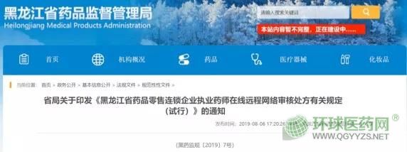 8月6日晚間,黑龍江省藥品監(jiān)督管理局官網(wǎng)發(fā)布《黑龍江省藥品零售連鎖企業(yè)執(zhí)業(yè)藥師在線遠(yuǎn)程網(wǎng)絡(luò)審核處方有關(guān)規(guī)定(試行)》通知,旨在提高零售連鎖企業(yè)藥學(xué)服務(wù)和質(zhì)量管理水平,規(guī)范和推動該省執(zhí)業(yè)藥師在線遠(yuǎn)程網(wǎng)絡(luò)審核處方工作。