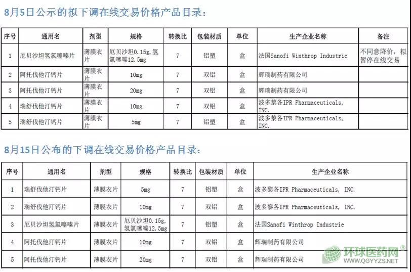 對比10天前該中心公示的處理結(jié)果,此前“不同意降價,擬暫停在線交易”的法國賽諾菲的厄貝沙坦氫氯噻嗪片終于也沒再堅持,與輝瑞制藥的阿托伐他汀鈣片、波多黎各IPR Pharmaceuticals, INC.公司的瑞舒伐他汀鈣片一同,下調(diào)在線交易價格。