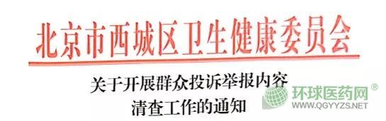 通知稱,根據(jù)北京市衛(wèi)健委的要求,擬對(duì)群眾舉報(bào)投訴內(nèi)容展開清查工作,北京市各區(qū)衛(wèi)生健康部門對(duì)一二三級(jí)醫(yī)療機(jī)構(gòu)、社區(qū)服務(wù)中心進(jìn)行清查。