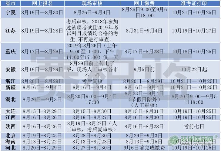 附:各省市執(zhí)業(yè)藥師考試報名時間安排
