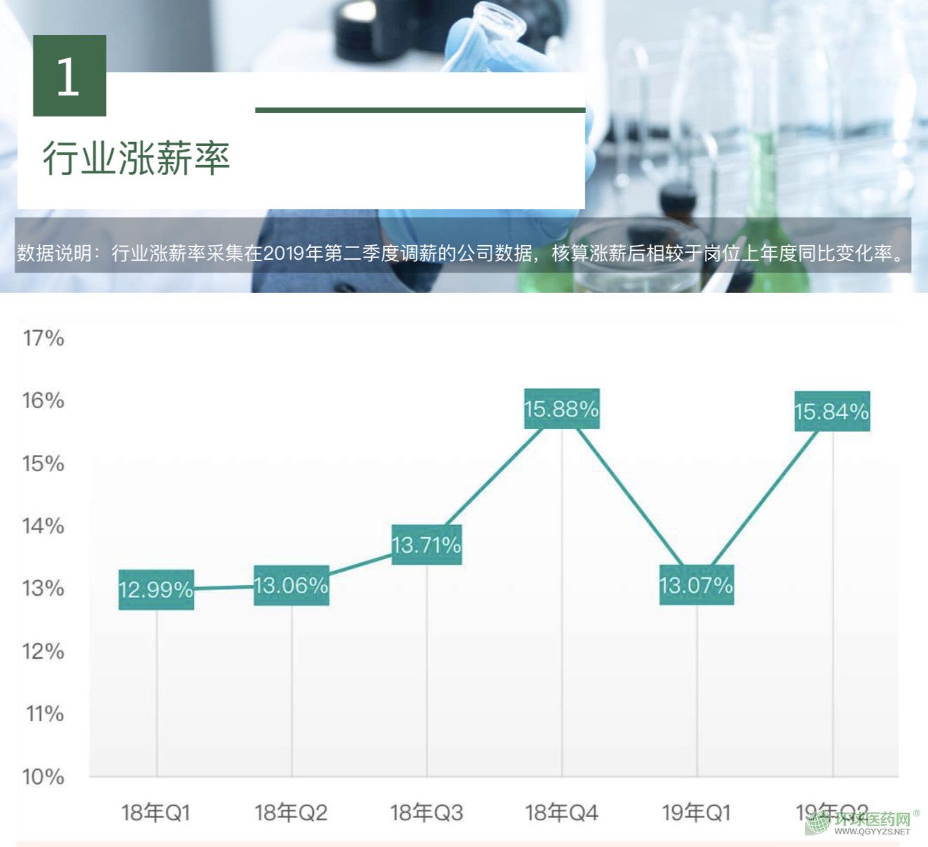 從行業(yè)漲薪率來(lái)看,2018年到2019年Q2這段時(shí)間內(nèi),與其他行業(yè)相比,醫(yī)藥行業(yè)一直保持著可觀的漲薪率。