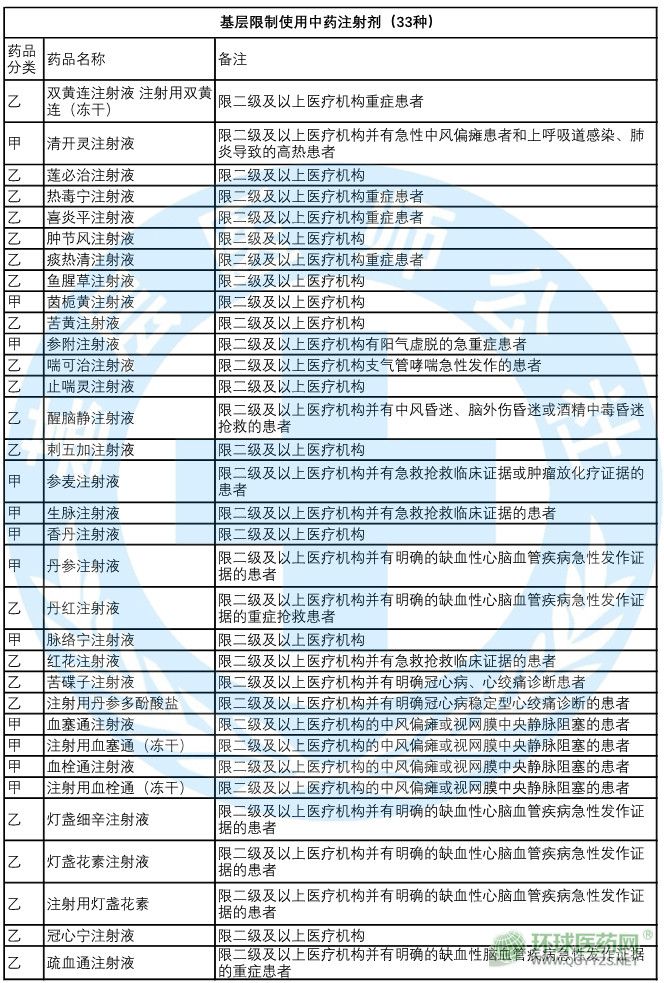 一、33類中藥注射劑,二級以下醫(yī)療機構(gòu)使用受限