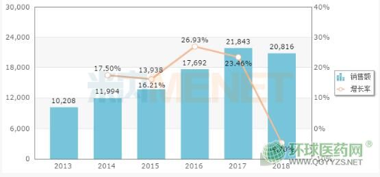 米內(nèi)網(wǎng)數(shù)據(jù)顯示,2018年中國公立醫(yī)療機構(gòu)終端阿昔洛韋銷售額為2.08億元,片劑占比29.32%。阿昔洛韋片原研廠家為葛蘭素史克,目前暫未獲批進口。