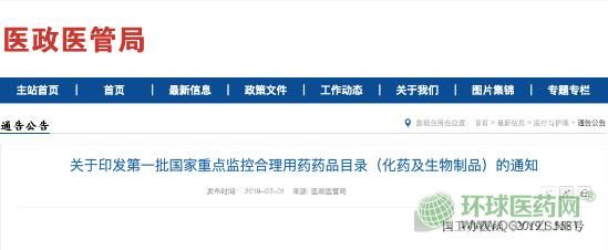 7月1日,國家衛(wèi)健委發(fā)布《關(guān)于印發(fā)第一批國家重點監(jiān)控合理用藥藥品目錄(化藥及生物制品)的通知》。