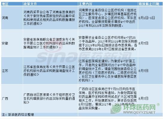 就在該份文件流出之際,有媒體曝出,廣西、河南、安徽、江蘇等正在組織全省/區(qū)填報國家組織藥品集中采購和使用試點(diǎn)相關(guān)藥品實(shí)際采購數(shù)據(jù)。