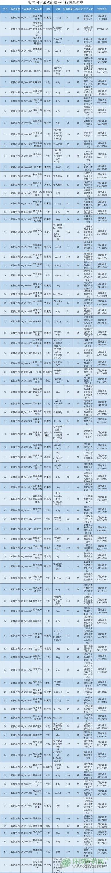 附 暫停網(wǎng)上采購的部分中標(biāo)藥品名單