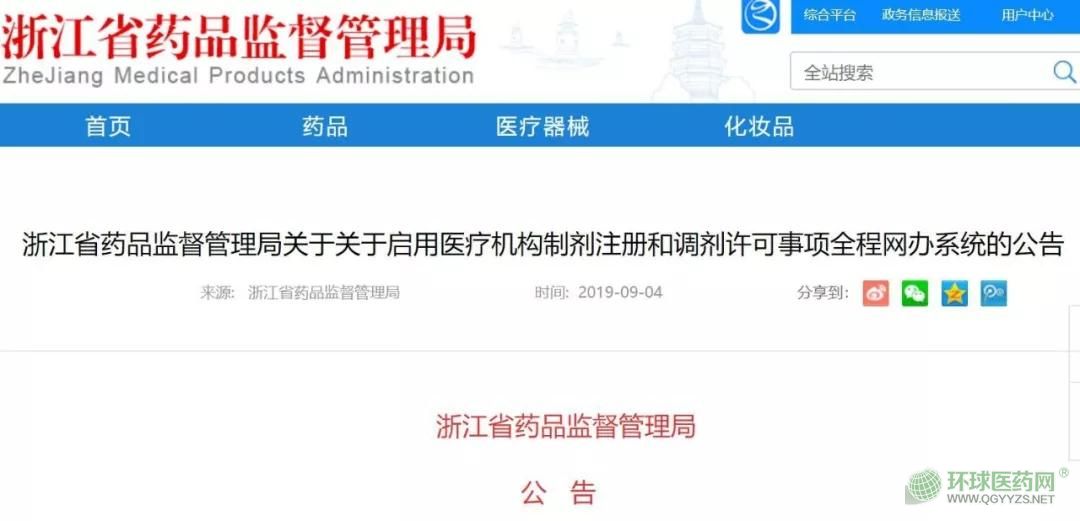 9月4日,浙江省藥品監(jiān)督局官方網(wǎng)站發(fā)布《浙江省藥品監(jiān)督管理局關(guān)于啟用醫(yī)療機構(gòu)制劑注冊和調(diào)劑許可事項全程網(wǎng)辦系統(tǒng)的公告》(簡稱《公告》),提出對醫(yī)療機構(gòu)制劑注冊和調(diào)劑許可事項進行歸并、調(diào)整和流程再造。
