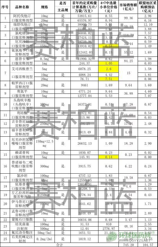 按“4+7”中選價格(單片/支/袋)進行粗略估算,本輪聯(lián)盟地區(qū)集中采購累計藥品采購金額為104.57億元。