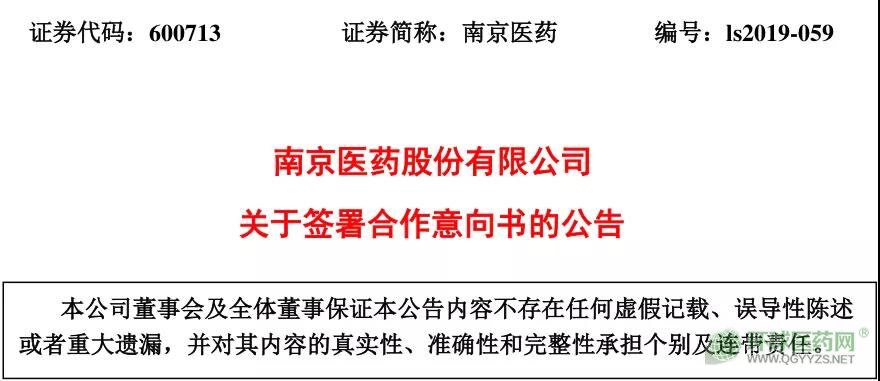 公告顯示,南京醫(yī)藥在9月9日與恩華藥業(yè)、自然人陳支援簽署了《合作意向書(shū)》。