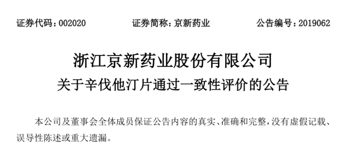 9月11日,京新藥業(yè)發(fā)布公告,公司于近日收到國家藥監(jiān)局批準核發(fā)的化學藥品“辛伐他汀片(20mg)”的《藥品補充申請批件》,該藥品通過仿制藥一致性評價。