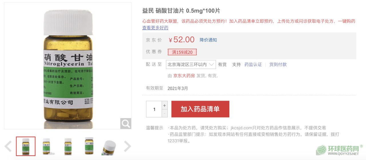 截至今日18:00,賽柏藍(lán)在京東大藥房上以“硝酸甘油片”為關(guān)鍵詞查詢顯示,益民藥業(yè)的硝酸甘油片(0.5mg*100片/瓶)的價格為59元。