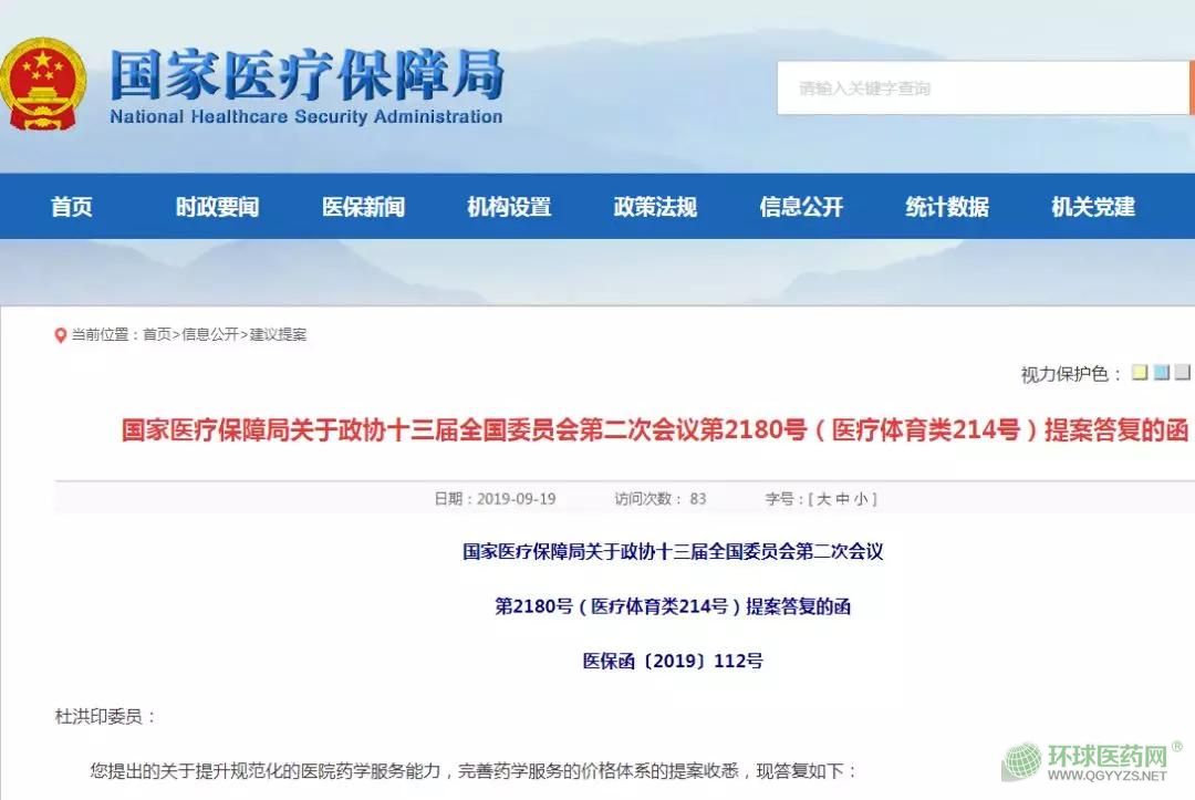 9月19日,國家醫(yī)保局官網(wǎng)發(fā)布《關于政協(xié)十三屆全國委員會第二次會議第2180號(醫(yī)療體育類214號)提案答復的函》,針對“建立合理的藥學服務價格體系”一項建議,明確提出“將開展相關服務項目收費政策專題研究,探索適宜的收付費方式,激勵藥學人員在促進合理用藥、減少資源浪費等方面發(fā)揮積極作用。”