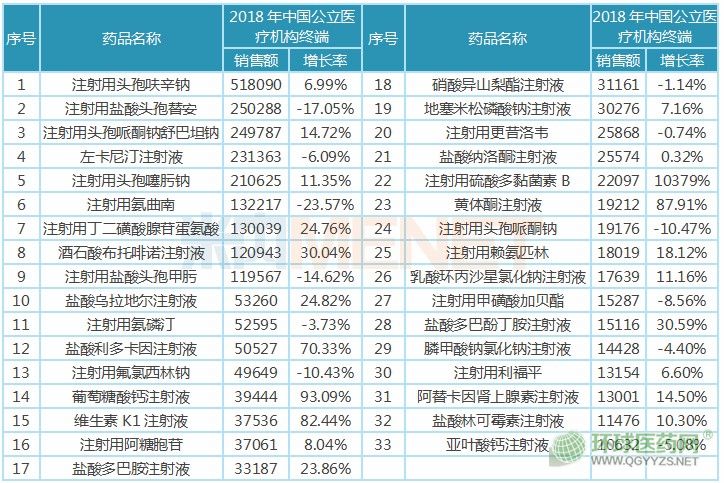 33個過億品種中,鹽酸利多卡因注射液、葡萄糖酸鈣注射液、維生素K1注射液、注射用硫酸多黏菌素B、黃體酮注射液5個品種2018年的銷售額同比去年增長均超過50%,市場空間及增長潛力大。