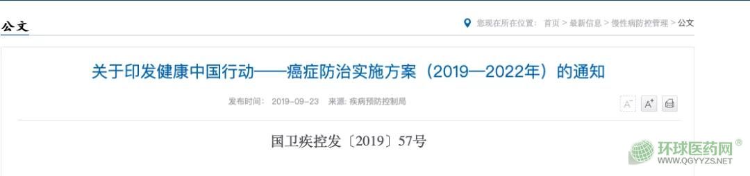 9月23日,國家衛(wèi)健委發(fā)布《關(guān)于印發(fā)健康中國行動——癌癥防治實(shí)施方案(2019—2022年)的通知》(以下簡稱《通知》)。