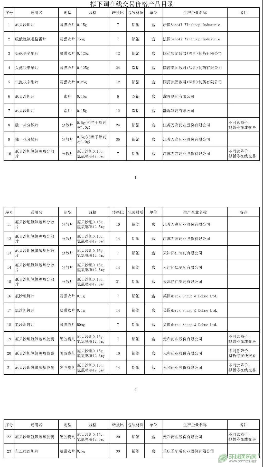 浙江省發(fā)布《通知》,明確厄貝沙坦片、硫酸氫氯吡格雷片、頭孢呋辛片、獨(dú)一味分散片等多個(gè)品種,擬于10月31日之后產(chǎn)生全國最低價(jià)格之后進(jìn)行價(jià)格調(diào)整,并點(diǎn)名萬高藥業(yè)、元和藥業(yè)等“不同意降價(jià)擬暫停在線交易”。