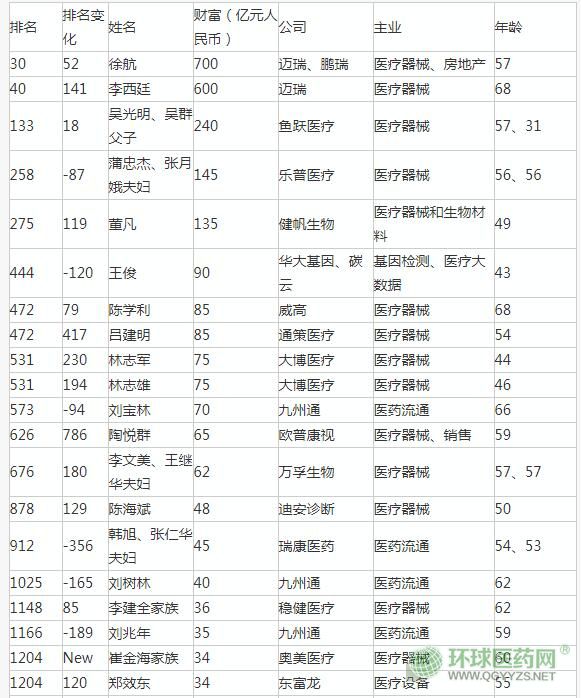 據(jù)賽柏藍(lán)器械統(tǒng)計(jì),醫(yī)療器械行業(yè)有29人上榜(文末附具體名單)。