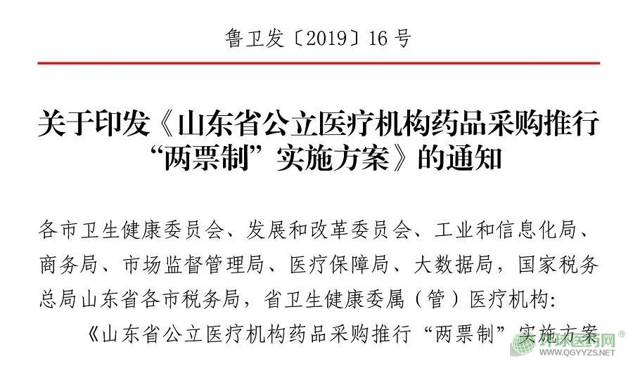 網(wǎng)傳了許久,山東省的“兩票制”方案終于露出“真容”:“在全省范圍內(nèi)各級公立醫(yī)院的藥品采購全面推行‘兩票制’,同時鼓勵非公醫(yī)院也可積極推行‘兩票制’,同時嚴(yán)控‘第三票’,試點實行‘一票制’!边@是山東省衛(wèi)健委、發(fā)展委、醫(yī)保局、大數(shù)據(jù)局、藥監(jiān)局等10部門近日聯(lián)合發(fā)布的《山東省公立醫(yī)療機(jī)構(gòu)藥品采購?fù)菩小皟善敝啤睂嵤┓桨浮罚ㄒ韵潞喎Q《方案》)提出的明確要求。