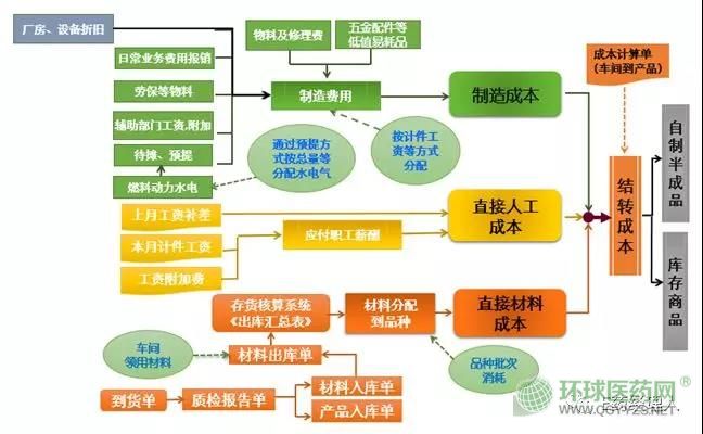 圖1:藥企藥品成本核算要素及流程圖