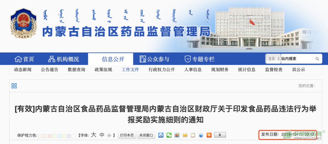近日,內(nèi)蒙古藥監(jiān)局發(fā)布了《內(nèi)蒙古自治區(qū)食品藥品違法行為舉報獎勵實施細(xì)則(試行)》的通知。