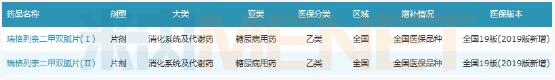 圖2:2019版國(guó)家醫(yī)保目錄瑞格列奈二甲雙胍的具體情況
