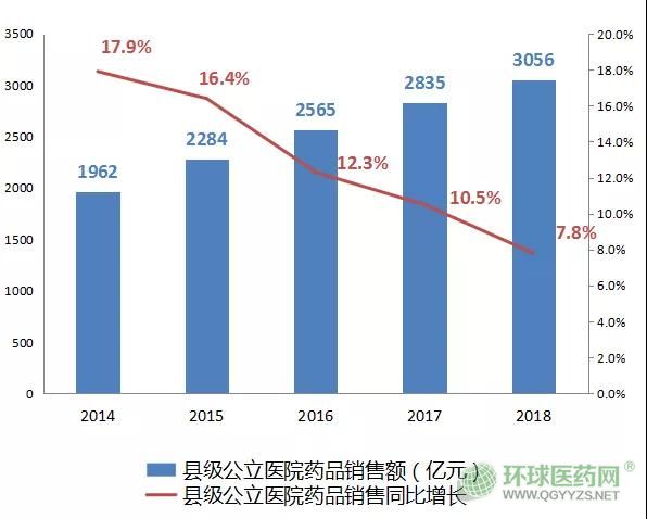 2014-2018縣級公立醫(yī)院藥品銷售變化