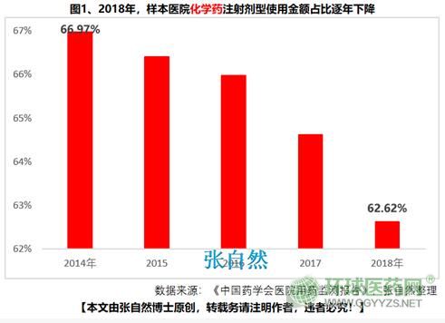 據(jù)《中國藥學(xué)會2018年度醫(yī)院用藥檢測報告(化學(xué)藥品與生物制品部分)》統(tǒng)計,近5年來樣本醫(yī)院注射劑型使用金額占比已從2014年的66.97%下降到2018年62.62%,5年下降了4個百分點,皆因政策調(diào)整使然,2017年10月的兩辦文件發(fā)布以來,各方對能口服就不注射、能肌注就不靜注的要求越來越嚴,所以注射劑型占比正逐年下降。
