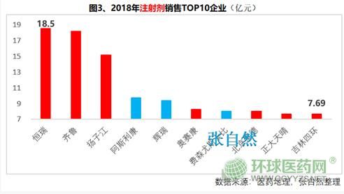 化學(xué)藥注射劑多是大企業(yè)的天下,如圖3所示的2018年銷售額排前10位的藥企恒瑞、齊魯、揚子江等都是耳熟能詳?shù)闹笮推髽I(yè),且其中還有阿斯利康、輝瑞等跨國藥企,因此,后化學(xué)注射劑一致性評價時代,化學(xué)藥的競爭,將是旗鼓相當(dāng)?shù)拇笮退幤箝g的競爭,其激烈程度可想而知。