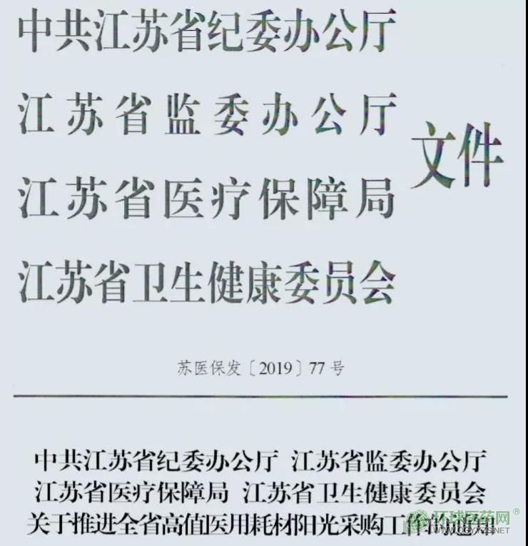 近期,中共江蘇省紀(jì)委辦公廳、江蘇省監(jiān)委辦公廳、江蘇省醫(yī)療保障局和江蘇省衛(wèi)生健康委印發(fā)《關(guān)于推進(jìn)全省高值醫(yī)用耗材陽光采購工作的通知》(下稱《通知》)表示,從今年10月起,推動(dòng)全省公立醫(yī)療機(jī)構(gòu)在省平臺(tái)開展陽光采購,杜絕違規(guī)網(wǎng)下采購現(xiàn)象。