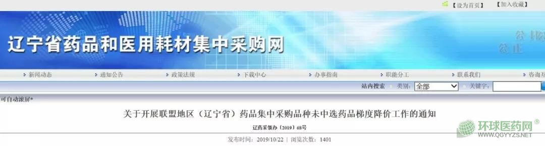 10月22日,遼寧省藥品和醫(yī)用耗材集中采購網(wǎng)發(fā)布《關(guān)于開展聯(lián)盟地區(qū)(遼寧。┧幤芳胁少徠贩N未中選藥品梯度降價工作的通知》(簡稱《通知》),要求按照國家政策相關(guān)規(guī)定,就聯(lián)盟地區(qū)(遼寧省)藥品集中采購品種未中選藥品展開梯度降價工作。