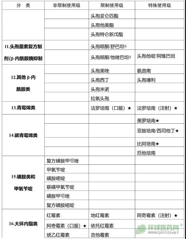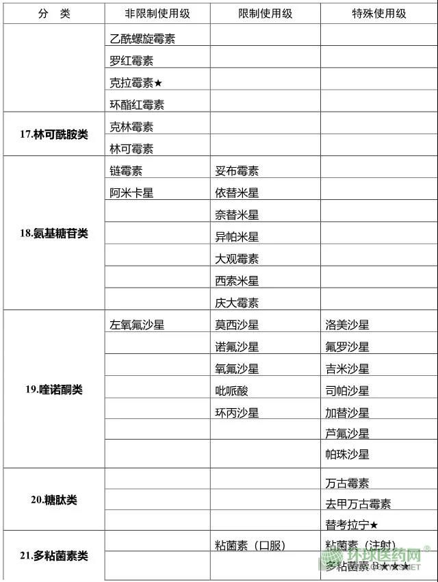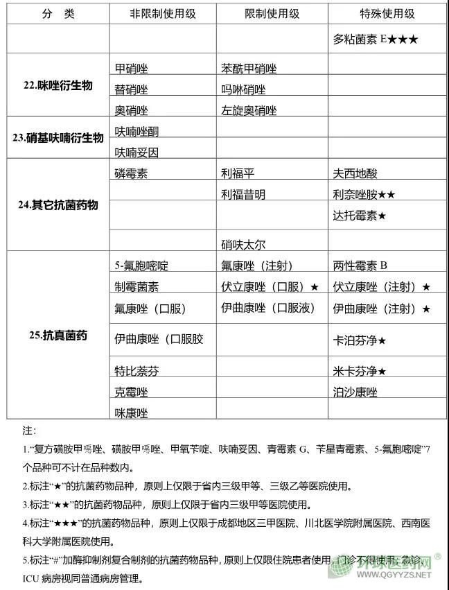 以下附四川省抗菌藥物臨床應用分級管理目錄(2019版)
