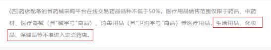其中,第四條中明確:生活用品、化妝品、保健品不得進入定點藥店。