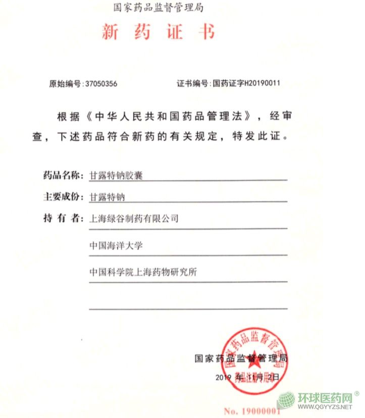 2019年11月2日,國家藥品監(jiān)督管理局批準(zhǔn)了上海綠谷制藥有限公司治療阿爾茨海默病新藥——九期一®(甘露特鈉,代號:GV-971)的上市申請,“用于輕度至中度阿爾茨海默病,改善患者認(rèn)知功能”。九期一®通過優(yōu)先審評審批程序在中國大陸的上市為全球首次上市,填補(bǔ)了這一領(lǐng)域17年無新藥上市的空白。